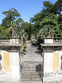 El jardín del palacio, ampliado hasta alcanzar una extensión muy notable (iba prácticamente desde la zona de Pugliano hasta el Granatello, hacia el mar) está dividido en el Parque Superior y el Parque Inferior.[5]