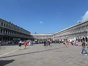 El Palacio Real de Venecia tiene como continente las Procuratie Nuove (Procuradurías Nuevas) que delimitan el lado sur de la Plaza de San Marco y la Biblioteca Marciana en la piazetta frente al Palacio Ducal.