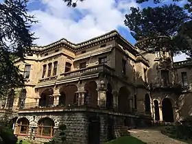 Aparece rodeada por un originalmente amplio jardín murado con bella puerta de acceso. Junto a la entrada posee un edificio auxiliar, diseñado por el mismo arquitecto en 1916 como garaje de la finca, que estilísticamente se incorpora dentro de las corrientes del regionalismo neovasco. Es un edificio de gran calidad arquitectónica y ambiental.