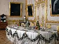 Cruzando el Comedor de los Cortesanos presentes, en el otro lado de la Escalera Principal, está el Comedor Formal Blanco. La sala se usaba para las cenas formales de la emperatriz o «comidas de la tarde». Las paredes del comedor estaban decoradas con la mayor extravagancia con tallas doradas. Los revestimientos consisten en tallas doradas sobre las consolas. El mural pintado, El triunfo de Apolo es una copia de una pintura realizada en el siglo XVI por el artista italiano Guido Reni.