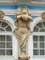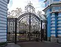 En vida de Isabel, el palacio ganó fama por su exterior obscenamente lujoso. Se usaron más de 100 kilos de oro para dorar la sofisticada fachada de estuco y numerosas estatuas erigidas sobre el tejado. Incluso se rumoreó que el tejado del palacio estaba construido enteramente de oro. En frente del palacio se diseñó un enorme jardín formal. Se centre en el pabellón del Hermitage azul y blanco cerca del lago, diseñado por Zemtsov en 1744, revisado por Rastrelli en 1749 y anteriormente coronada por una gran estatua dorada representando El rapto de Perséfone. El interior del pabellón tenían mesas de comedor con mecanismos de mesita rodante. La gran entrada al palacio se encuentra flanqueada por dos «circunferencias» macizas, en estilo rococó. Una delicada reja de hierro colado separa el complejo de la ciudad de Tsárskoye Seló.