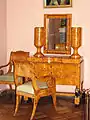 Otros interiores de Cameron eran la Habitación de los Camareros, con un suelo incrustado de palo de rosa, amaranto y caoba y estilosas mesas de cartas Chippendale; el Comedor formal Azul, con papel pintado de seda azul y blanco y chimeneas de mármol de Carrara; la Sala de Dibujo azul chino, una curiosa combinación de estilo Adam con la chinoiserie; la Antecámara del Coro, con paredes revestidas de seda color albaricoque; y el tocador con columnas de Alejandro I, ejecutado en estilo pompeyano.