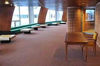 Cuenta con diecisiete salas de reuniones y alrededor de 100 oficinas para el personal de la secretaría del Consejo de Europa y el hemiciclo de la Asamblea Parlamentaria, sede de la primera asamblea parlamentaria internacional de la historia.[3]
