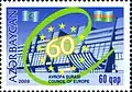 En el exterior se muestran el conjunto de las 47 banderas de los estados miembros indicando la fecha de su adhesión.