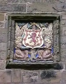 Después de la Unión de las Coronas en 1603, el arquitecto James Murray reparó el palacio para la visita del Rey Jacobo en 1617.[48] Algunos cortesanos se alojaron en la casa de Nicol Moncrieff, que aún se encuentra en Falkland, frente a la puerta del palacio.[49] En las celebraciones para dar la bienvenida al rey el 19 de mayo, David Wedderburn proporcionó un poema en latín, en el que se pedía al rey, después de un día de caza, que contemplara los recuerdos del pasado de Escocia, las victorias sobre los romanos y los vikingos, las guerras de independencia de Escocia y la unión actual de los reinos de Gran Bretaña.[50]