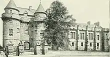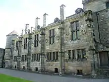 Las fachadas de los patios Sur y Este fueron decoradas y unificadas con pilastras de estilo renacentista francés entre 1537 y 1542. Su apariencia es comparable al castillo francés de Villers-Cotterêts. Los contrafuertes del Este datan de 1537, y los del Sur, donde la mampostería es más sofisticada, de 1539. El trabajo posterior puede estar relacionado con la llegada de Nicolás Roy, un albañil francés enviado a Escocia en marzo de 1539 por Antonieta de Borbón, la madre de María de Guisa.[60] El techo de la capilla data de la época de Jacobo V, como ha confirmado un reciente trabajo de dendrocronología del Grupo AOC,[61] y fue redecorado con motivo de la visita de Carlos I en 1633. James Murray, maestro de obras, recibió la orden de reparar el techo del cuartel sur en 1625, con instrucciones de "tener un cuidado y consideración especiales" para que el gran techo de la capilla se preservara y mantuviera en la medida de lo posible.[62]