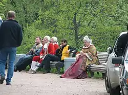 Actores en una pausa del rodaje en el palacio de Gátchina, mayo de 2006.