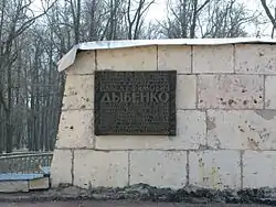 El palacio de Gátchina quedó en manos de los ocupantes nazis hasta enero de 1944, cuando las tropas alemanas se retiraron, incendiando el palacio. Una parte de los bienes fueron destruidos y los restantes llevados a Alemania. En una placa de yeso colocada sobre las paredes del palacio sobrevivió la inscripción «Aquí estuvimos. No volveremos. Si viene Iván, todo estará vacío».[6] Esta inscripción se conservó en un fragmento del muro, siendo hoy exhibida en la exposición del palacio.