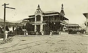 El edificio posee dos niveles y está construido principalmente con una estructura de acero, así como madera, con detalles forjados en hierro.