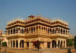 El palacio de Jaipur, que incluye a los palacios Chandra Mahal y Mubarak Mahal junto con otras construcciones, es un complejo palaciego en Jaipur, la capital del estado de Rajasthan, India. Era la sede del Maharaja de Jaipur, el jefe del clan Kachwaha Rajput.