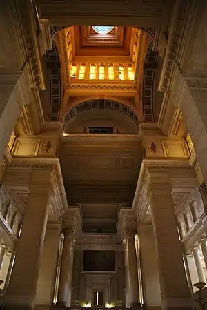 De un estilo en el cual se fusiona el neoclasicismo con el neobarroco decimonónico, el edificio mide 104 metros de altura y su cúpula pesa 24.000 toneladas. El Palacio de Justicia cuenta además con 8 patios y con una superficie de 6000 m² junto con otras 27 grandes salas de audiencia, 245 salas más pequeñas y otras salas.