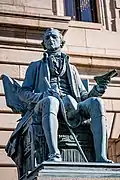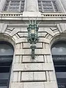 La entrada principal está flanqueada por estatuas de bronce de Thomas Jefferson y Alexander Hamilton esculpidas por Karl Bitter.[1]