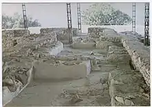 El palacio, al contrario que otros centros micénicos de la región de Argólida, como Micenas o Tirinto, carecía de murallas[11] y se abastecía de agua a través de un acueducto de terracota que recogía el agua de una fuente.[12]