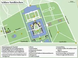 - Esta obra contiene una traducción derivada de «Nordkirchen Castle» de Wikipedia en inglés, publicada por sus editores bajo la Licencia de documentación libre de GNU y la Licencia Creative Commons Atribución-CompartirIgual 3.0 Unported.