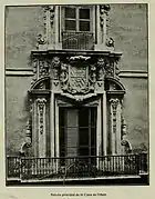 La portada —obra de Pedro de Ribera o de José Benito de Churriguera, según las fuentes[3]— y el balcón principal eran de finales del siglo XVII o principios del XVIII. La construcción del palacio supuso un punto de inflexión en la arquitectura de Ribera, pasando a un estilo «de fachadas más ostentosas» que las de sus obras previas.[4] Desde dicho balcón la familia real presenciaba actos solemnes como la entrada en Madrid de la princesa María Luisa de Orleáns, esposa de Carlos II en 1680.