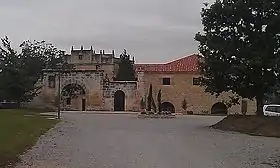 Destaca también la portalada de acceso a la propiedad, de sillería, con un arco de medio punto decorado con motivos vegetales y franqueado por pilastras, con un escudo de González. Se cree que fue trasladada desde otro palacio en Quijas.