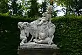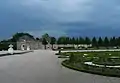 El jardín francés está rematado por la representación de una cacería, obra de Peter Anton von Verschaffelt. En la inmediata cercanía están los cuatro elementos representados en esculturas.