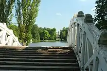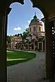 La ciudad, el palacio y el jardín, con sus construcciones meramente paisajísticas, fuentes y esculturas, construyen una unidad creativa que captura el paisaje circundante. Ambas partes del jardín ofrecen, junto a las numerosas estatuas, otros posibles destinos para una excursión del conde y su corte: el Templo de Mercurio (ruinas artísticas), el lago delante de la mezquita con madrasa, el Templo de Minerva, el Templo de Apolo, el Templo del Botánico, los baños (un pequeño pabellón), la Orangerie y una parte separada del jardín con estatuas de las estaciones, la "Perspectiva" junto a los baños y el acueducto romano con catarata artística incluida.