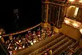 Las balaustradas de los palcos dibujan una planta en forma de lira. Las pilastras están adornadas y separadas por arcos de tres centros, que amplían el espacio.