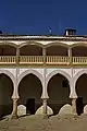 El edificio, de planta cuadrada, se encuentra en un lugar de gran belleza. El patio es mudéjar, de dos plantas, y está formado por una doble galería de cinco arcos en cada lado, siendo los arcos inferiores de herradura apuntados y mudéjares del siglo XVI y los superiores escarzanos del mismo siglo, con los escudos heráldicos de la Casa de Alba en las esquinas. En torno a este patio se distribuyen las habitaciones.