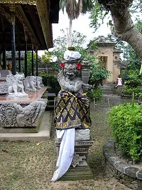 Muchas de las tallas en piedra fueron realizadas por el destacado artista local I Gusti Nyoman Lempad (1862?–1978). El pabellón principal suele albergar espectáculos de danza por la noche. Al norte se encuentra el pura Marajan Agung, el templo privado de la familia real. El recinto frente al palacio tiene un magnífico árbol de higuera de Bengala y también se utiliza como residencia para la familia real.[2]