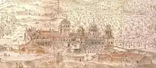 ![]() Palacio de Valsaín hacia 1633, obra de Félix Castelo. | ||