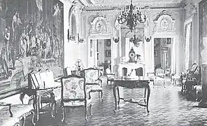 raros trozos de tapices, muebles delicados, ausencia de ornamentes inútiles y sin sentido expresan la personalidad a la vez dulce y adorable de la hija de la reina María Cristina.[8]