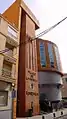 En su mitad inferior, el edificio envuelve el auditorio y, debajo, en el semisótano, con puerta directa a la calle, existe un ambigú.