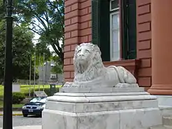 En 2006, el edificio se pintó en rojizo pardo (terracota o carmín pálido), y los dos leones en blanco; el león del lado derecho fue restaurado.