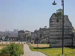 - The Palace of the Porphyrogenitus, seen in the background, with the Theodosian Walls in front