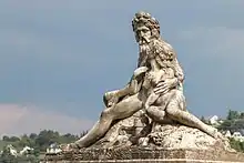 En el jardín detrás del palacio hay una escultura de piedra arenisca de 1854 de Johann Hartung que representa las figuras alegóricas del El padre Rin y la madre Mosela.