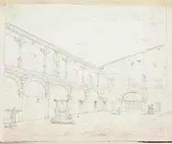 Poco se sabe del aspecto que pudo tener el palacio primitivo. Según el plano de Madrid de Pedro Teixeira (1656), su planta era cuadrangular y disponía de un amplio patio interior de dos alturas, que estaba porticado en sus dos plantas, en la línea de otras residencias madrileñas renacentistas, como el actual Museo de San Isidro o la Casa de Álvaro de Luján de la plaza de la Villa. El Museo del Prado conserva un dibujo de Cecilio Pizarro (1825-1886), donde puede apreciarse la configuración renacentista del patio, antes de su desaparición.