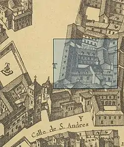 Según se intuye de otros dibujos y pinturas del siglo XIX, periodo en el cual se llevaron a cabo numerosas remodelaciones, el palacio constaba entonces de un solo volumen, de los cuatro reflejados por Teixeira. En el cuadro La costanilla de San Andrés (1840), de José María Avrial, puede verse una única estructura de planta rectangular, con cubiertas abuhardilladas a dos aguas y una sencilla fachada, abierta por varios vanos, que conferían al conjunto una marcada horizontalidad.