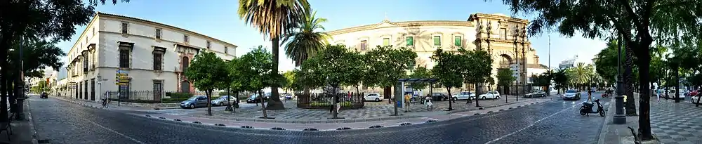 Se construyó en el antiguo llano de San Sebastián, vacío urbano existente hasta el siglo XVIII entre los conventos de San Juan de Dios y Santo Domingo, situados cada uno a un lado del acceso del camino de Sevilla a la ciudad, siendo un elemento conformador de los espacios urbanos que lo rodean y de la trama urbana del casco antiguo.