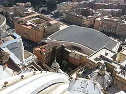 ![]() Una vista aérea de la Sala Pablo VI con el Palacio del Santo Oficio por detrás (con fachada de color naranja).