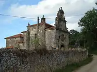 Tiene su fachada dividida en tres cuerpos, siendo el tercero la espadaña de campanas. La puerta de entrada es de arco de medio punto y se cierra con una potente reja. Sobre ella se repite el escudo familiar a cuyos lados se ven dos óculos redondos. Se accede al interior por un carrejo.[2]