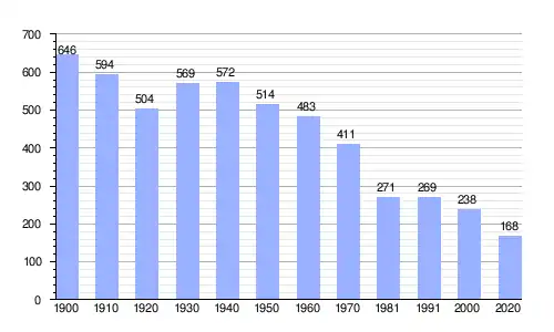 Gráfica de evolución demográfica de Palacios del Arzobispo entre 1900 y 2020 |