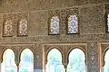 La sala se encuentra rodeada por un zócalo en cuyos extremos encontramos alcobas con zócalos de azulejos, que revisten las columnas que sujetan arcos peraltados y festoneados de mocárabes y pechinas. Desde aquí se accede al Torreón de Comares, presidido por el Salón de los Embajadores.