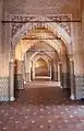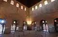 Presenta planta cuadrada de 11 metros de lado y 18 de altura, originalmente el suelo era de mármol y en la actualidad cerámico. En el centro de la sala se puede observar un cuadrado con el nombre de Alá escrito sobre azulejos. Los muros están estucados (un trabajo primoroso procedente de Persia y de Irak) y en ellos se repite en planchas alabanzas a Dios, leyenda «solo Alá es vencedor», así como al al emir y también algunos fragmentos del Corán, resultando un contenido poético muy rico. Cada centímetro de la pared está cubierto por algún elemento decorativo.