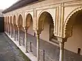 Se encuentra rodeado por una esbelta galería con 124 columnas de mármol blanco de Macael (Almería),