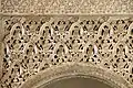 - Arabescos donde puede verse el escudo nazarí y la leyenda «Sólo Dios es vencedor»