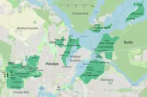 Los palacios y parques de Potsdam y Berlín son un grupo de complejos de palacios y jardines que se encuentran en Potsdam, y la capital de alemana Berlín. El término fue usado a partir de la designación del conjunto cultural como Patrimonio de la Humanidad por la Unesco en el año 1990.[1] Fue reconocido como una unidad histórica de paisaje y ejemplo único de diseño de jardines en el contexto de las ideas monárquicas de Prusia.