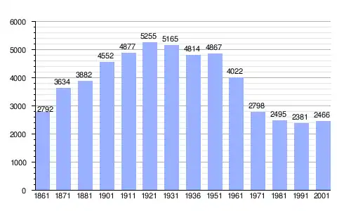 Gráfica de evolución demográfica de Palagano entre 1861 y 2001 |