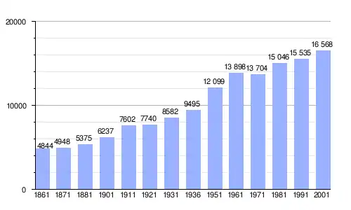 Gráfica de evolución demográfica de Palagonia entre 1861 y 2001 |