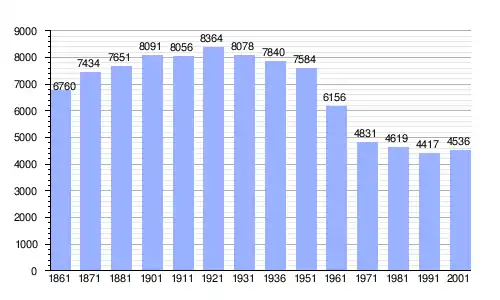 Gráfica de evolución demográfica de Palaia entre 1861 y 2001 |