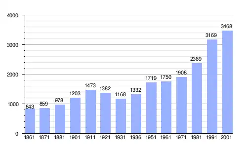 Gráfica de evolución demográfica de Palau entre 1861 y 2001 |
