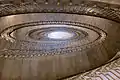 Está organizado alrededor de la parte central, de forma elipsoidal, caracterizada por el juego de llenos y vacíos y la presencia de grandes ventanas; en esta parte central se aloja la escalera principal elipsoidal, de mármol y con barandilla de hierro forjado.