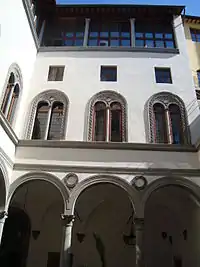 En 1913 fue comprado por el Banco de Florencia, que encargó la restauración al arquitecto Adolfo Coppedè. En ese momento, fue equipado con una cubierta sobre el patio, hecha en hierro y vidrios de color, luego retirada.