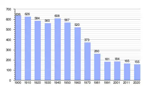 Gráfica de evolución demográfica de Palencia de Negrilla entre 1900 y 2020 |