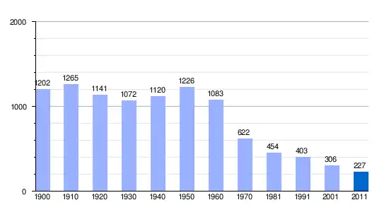 1900 | 1910 | 1920 | 1930 | 1940 | 1950 | 1960 | 1970 | 1981 | 1991 | 2001 | 2011 |
